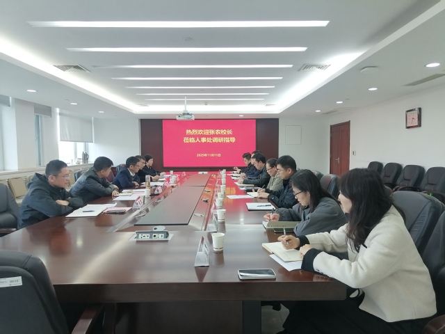 11 月 11 日下午,校长张农赴人事处进行调研座谈,了解人事处人员状况及相关工作情况。校办主任吴伟力陪同,人事处全体人员参加会议。